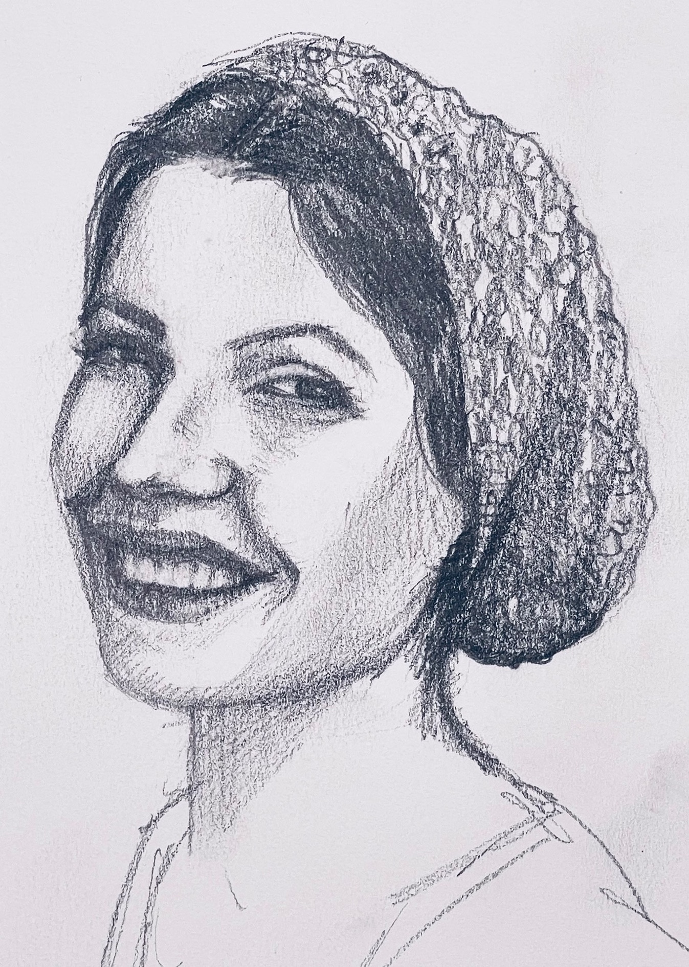 I wanted to do a line & wash or a quick watercolour portrait when I started but I was enjoying the graphite ; I guess I will start again at some point but for today it's enough. I've not been drawing or painting for a little while and this was my reunion with my pencil and sketchbook.